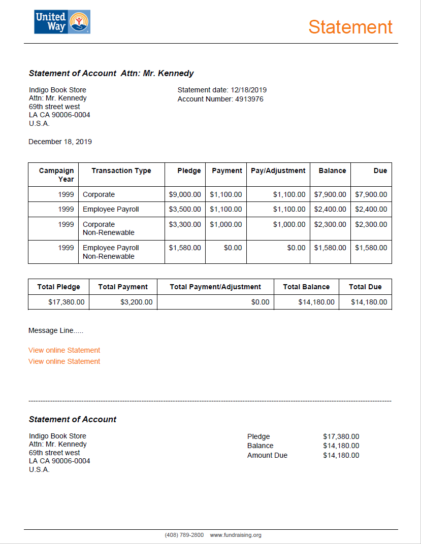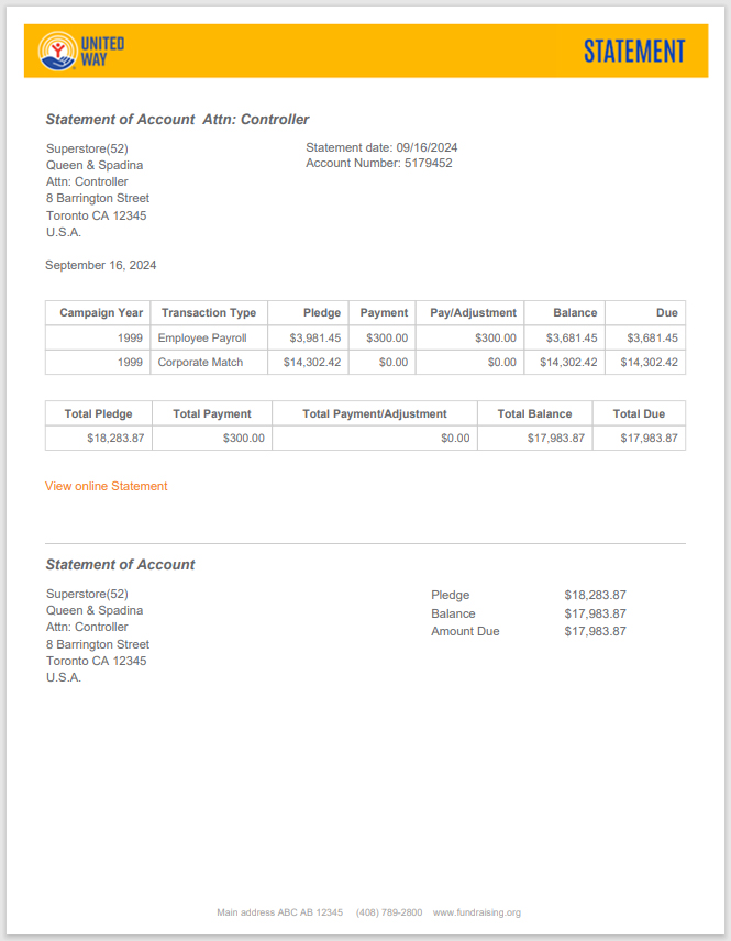 Designed for donors with outstanding balances, this template provides a clear, respectful layout for payment reminders. It ensures that your financial communications are professional, easy to understand, and maintain the integrity of the UWW brand.